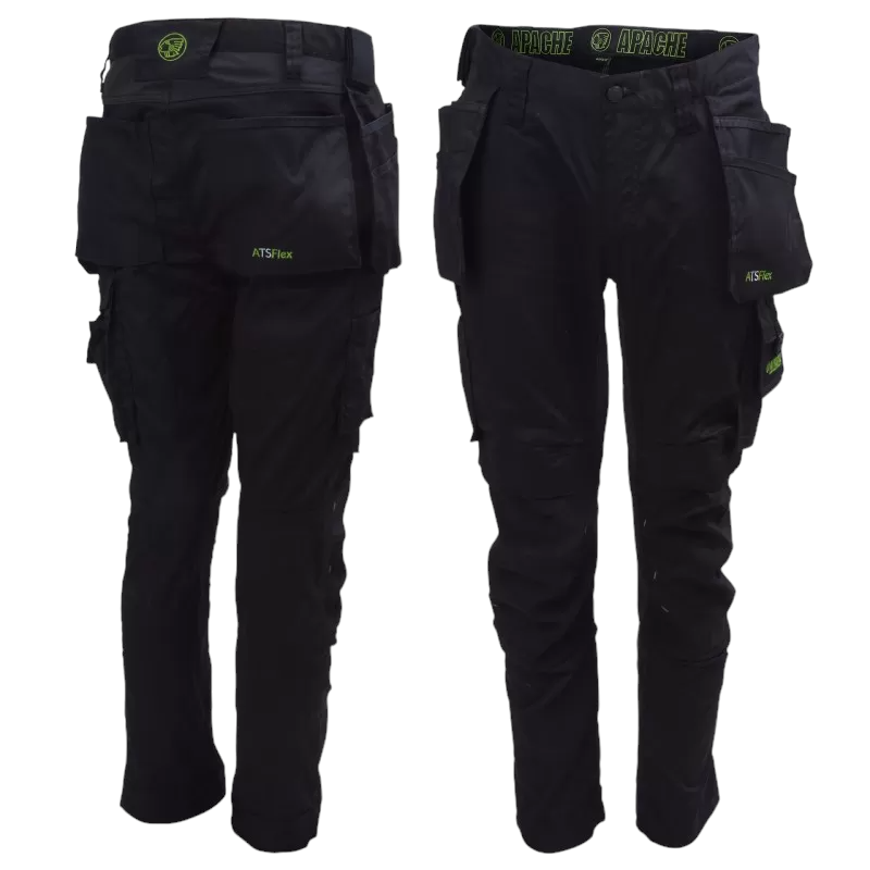 A 3D shaped work trouser / pants with 360 degree flex and stretch. The stretch panels can be found in the knee pad pockets, the gusset, and the rear giving you additional areas of movement. Fashion fit slimmer leg fit. Shaped holster pockets. Twin velcro tool holder. Cordura reinforced hem and pockets. YKK zipper. A trouser fully engineered for the worker.