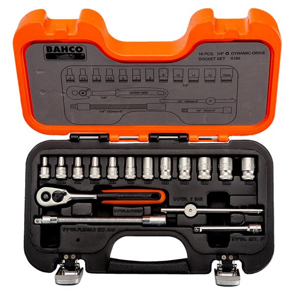 Bahco 16 Piece 1/4″ Drive Socket Set with Ratchet & Accessories S160